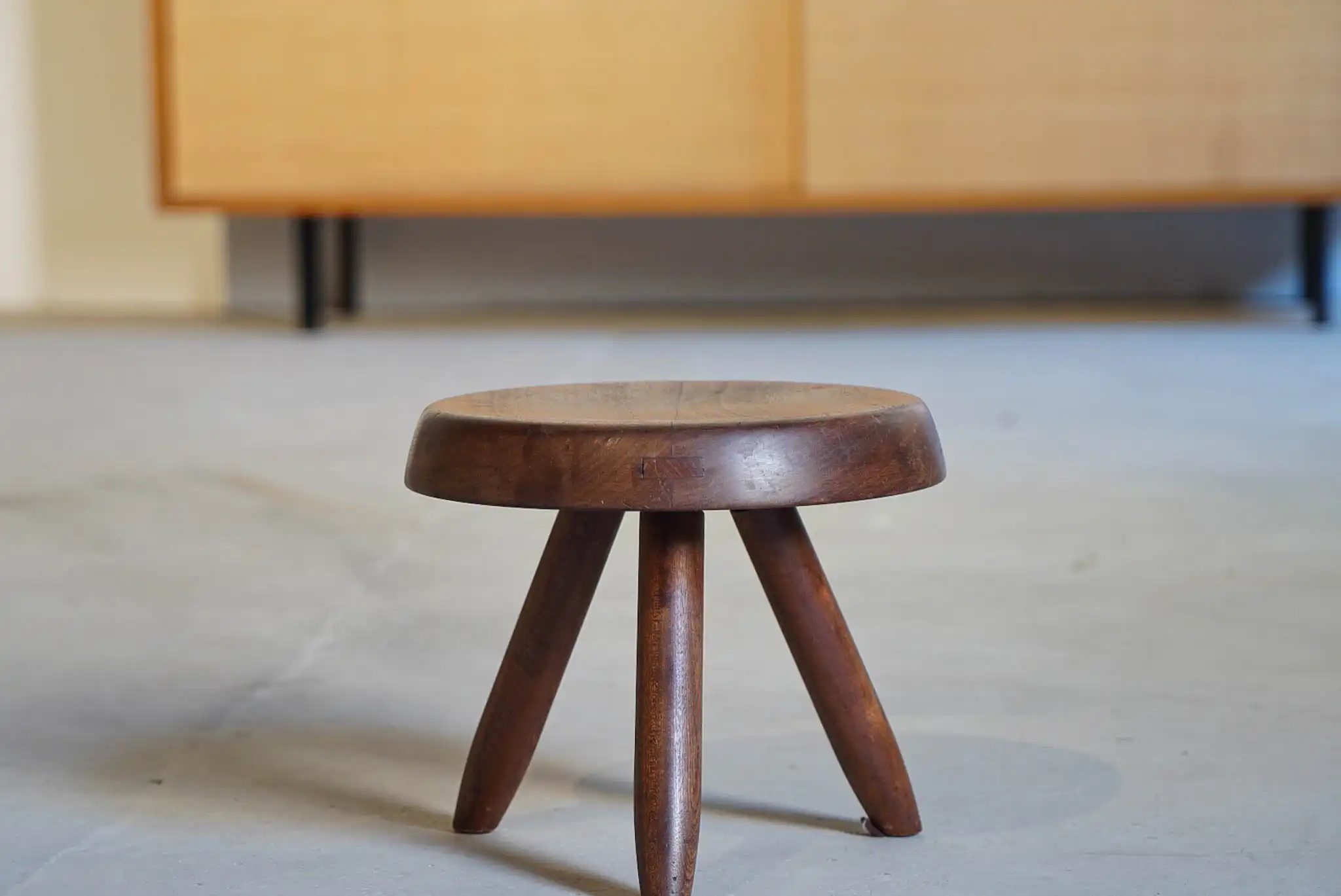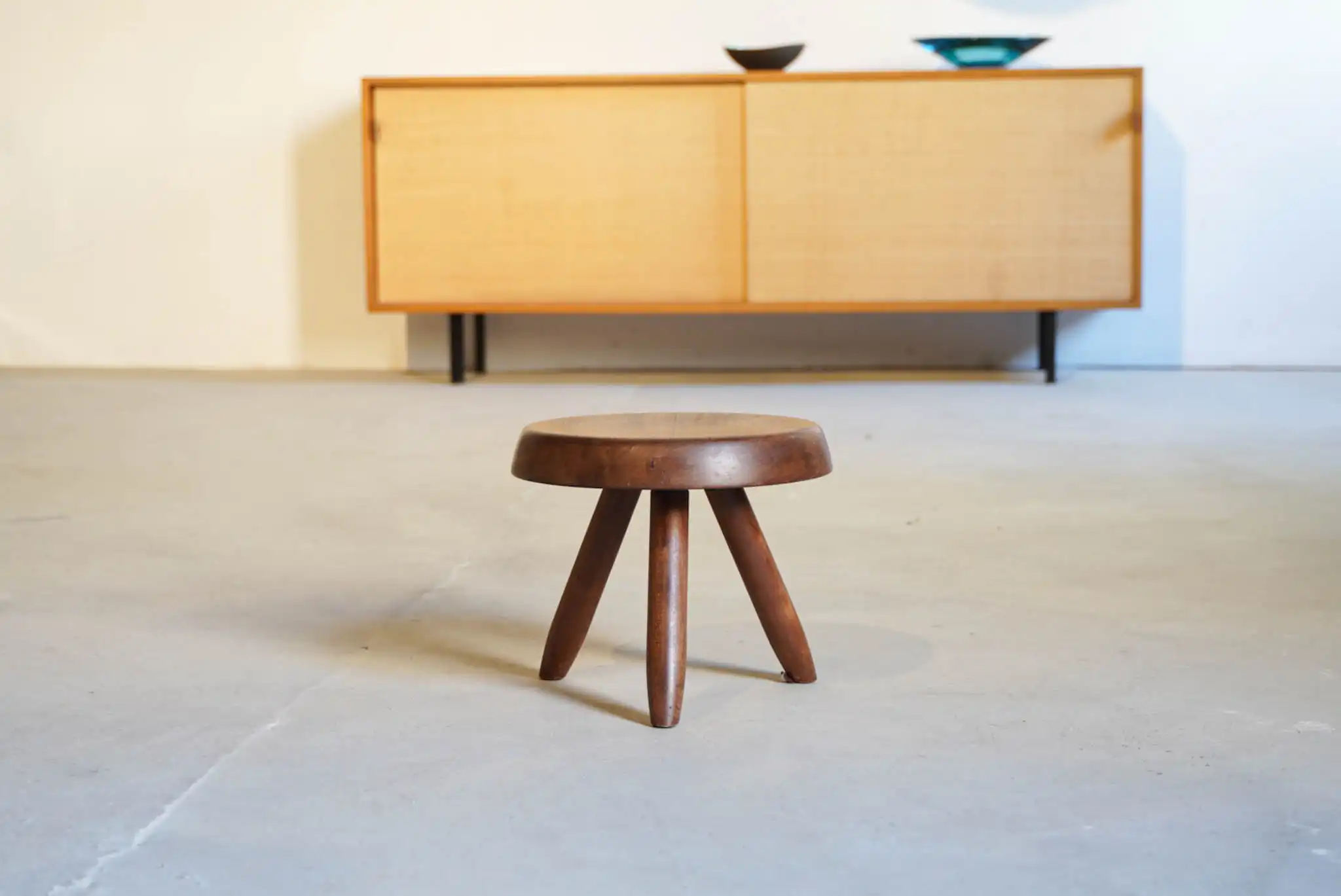 Der „Berger“-Hocker von Charlotte Perriand stammt aus den 1950er-Jahren und ist ein authentisches Original der renommierten Designerin. Gefertigt aus massivem Mahagoni, besticht er durch klare Linien, präzises Handwerk und die natürliche Wärme des Holzes. Mit seiner skulpturalen Silhouette und minimalistischen Gestaltung vereint der Hocker Funktionalität und Ästhetik. Er kann als Sitzgelegenheit, Beistelltisch oder dekoratives Objekt genutzt werden. Das gealterte Mahagoni zeigt eine reiche Patina, die jedes Exemplar zu einem einzigartigen Originalstück der Mid-Century-Ära macht – ein begehrtes Sammlerstück für Liebhaber zeitloser Designklassiker.