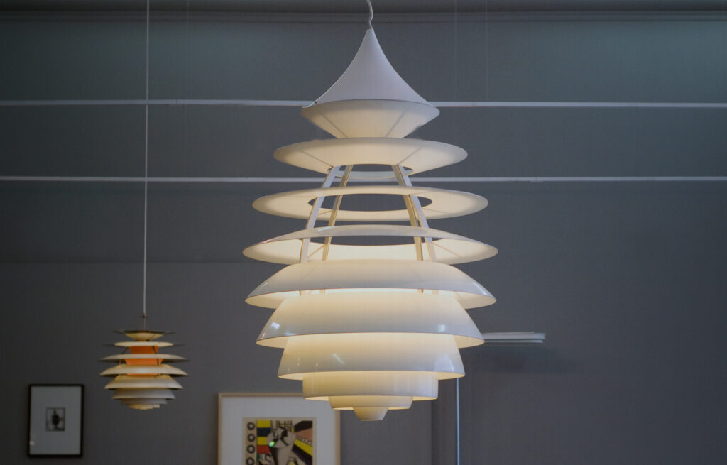 Die Pendelleuchte names ,,LP Centrum“ wurde von Kurt Nørregaard und Poul Henningsen für Louis Poulsen entworfen.