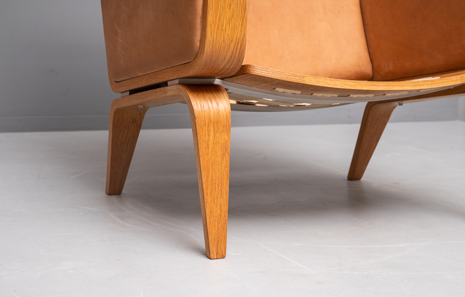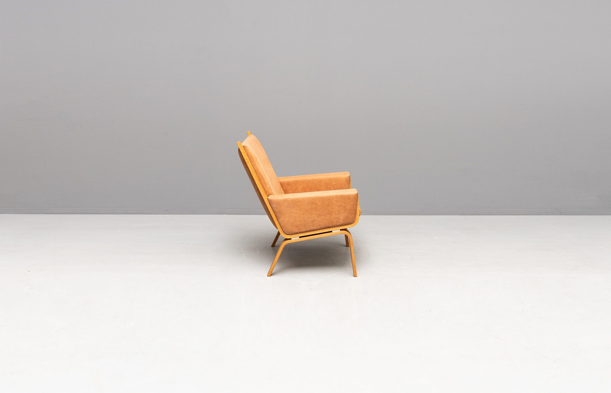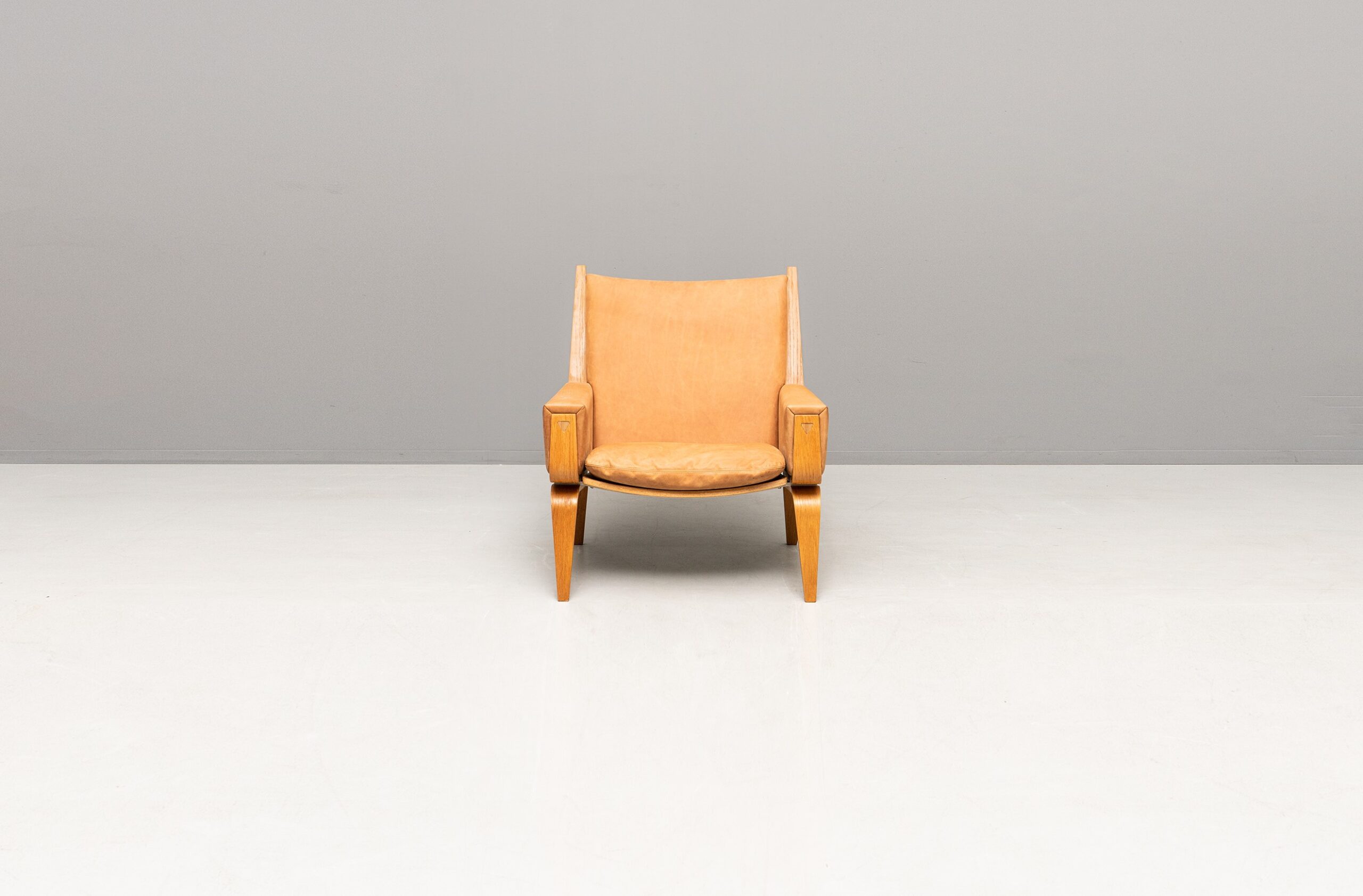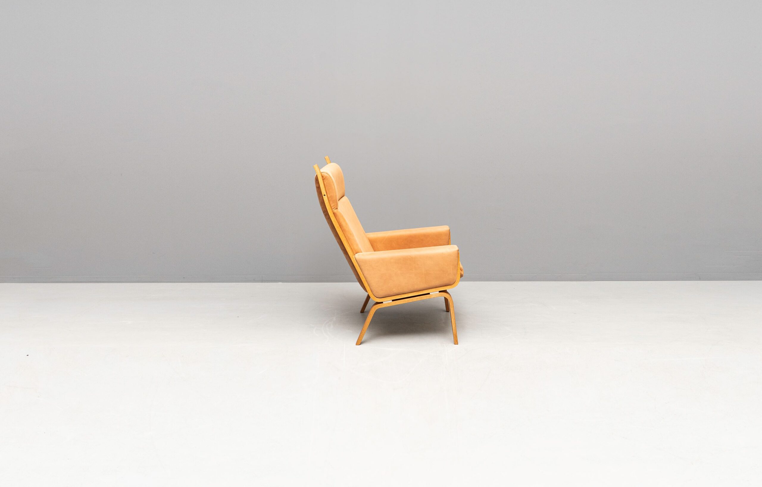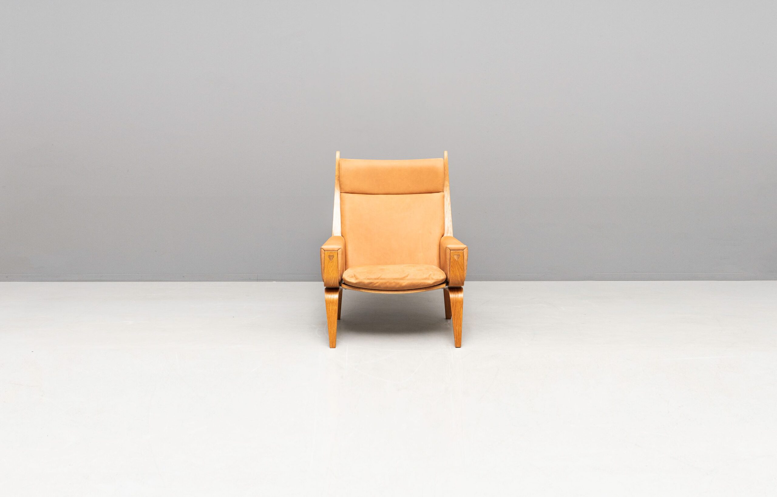 Wunderschöne GE 501A und GE 501 Sessel, entworfen von Hans J. Wegner und produziert von Getama. Eichenholzgestell, bezogen mit Nubukleder.