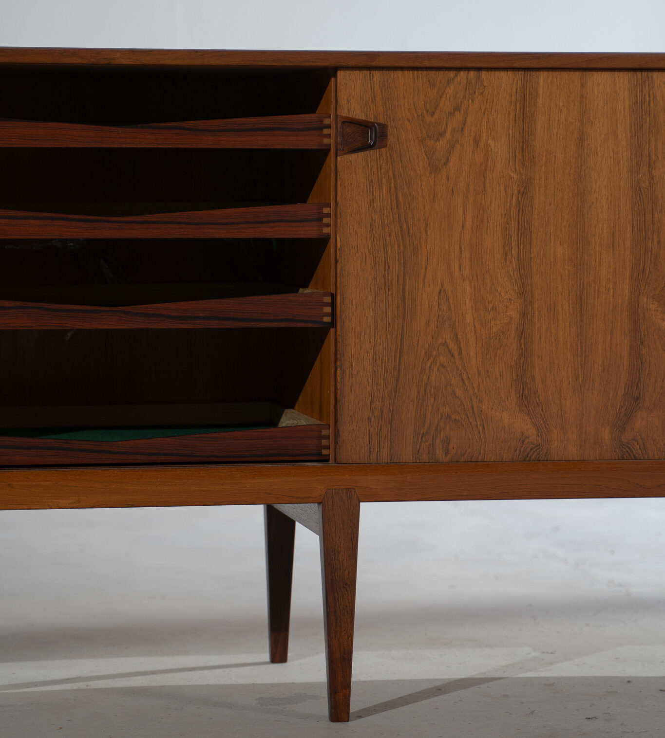 Dieses Palisander-Sideboard von Henry Rosengren Hansen ist ein erlesenes Beispiel des dänischen Mid-Century-Modern-Designs und wurde von Brande Møbelindustri gefertigt. Das Möbelstück überzeugt durch seine ausgewogenen Proportionen, hochwertige Materialien und präzise Verarbeitung.